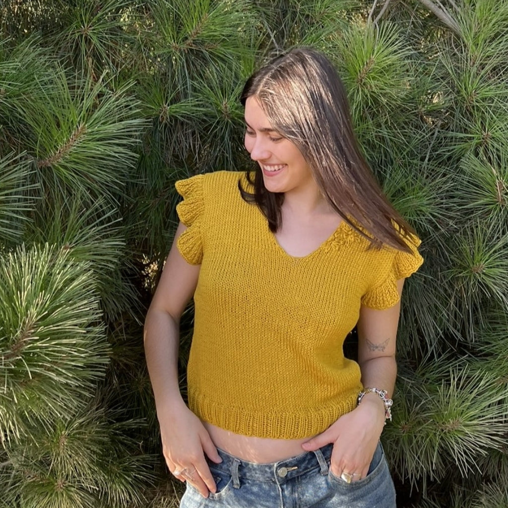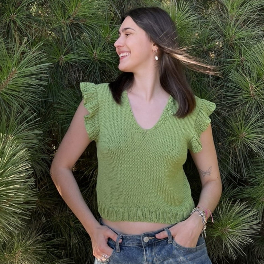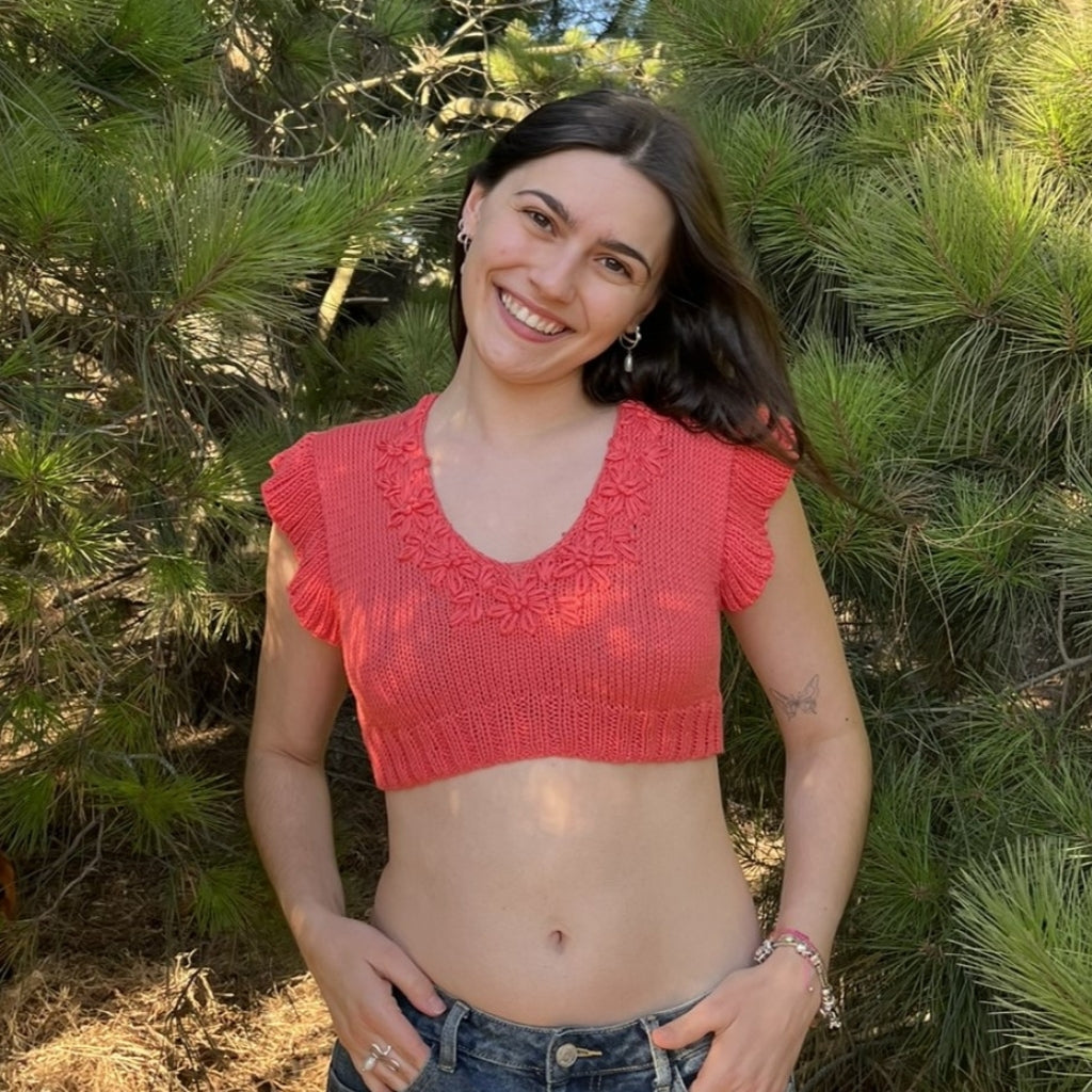 El Top Azucenas es una prenda delgadita y delicada para el verano, holgado y largo pensando en quienes no quieren mostrar tanta piel. Como soy maximalista de corazón, le bordé en el mismo tono unas flores, que se asemejan a las azucenas. Y de ahí nace su nombre. Es muy sencillo de tejer. Siguiendo las instrucciones, se puede hacer fácilmente.